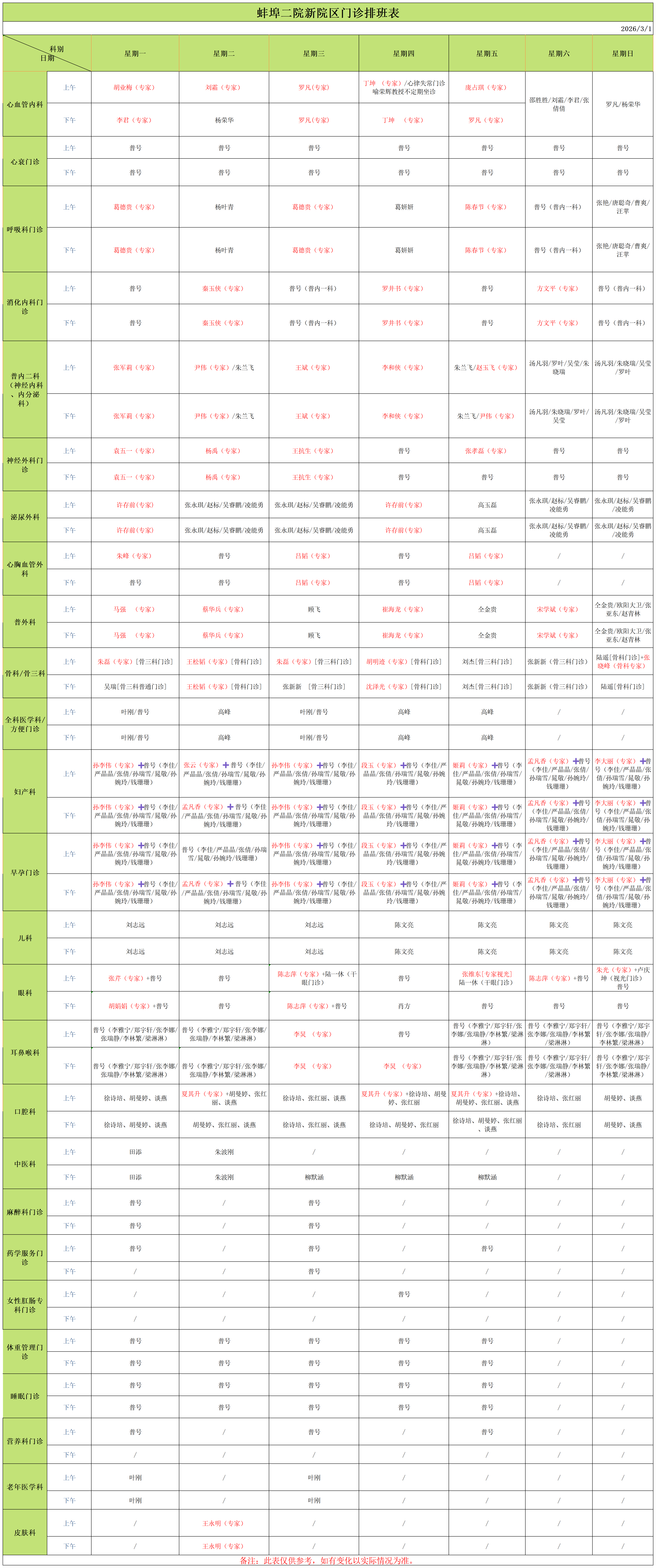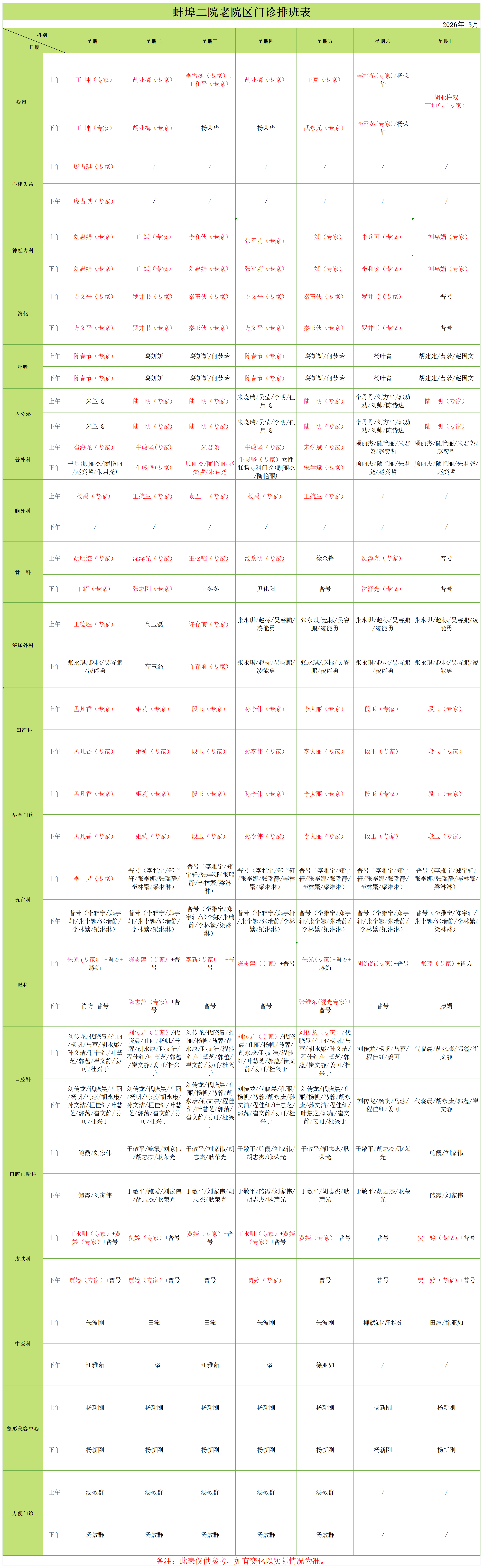 为方便广大就诊患者及时了解门诊出诊情况,现发布门诊三月排班表,出诊信息以当日实际排班为准。